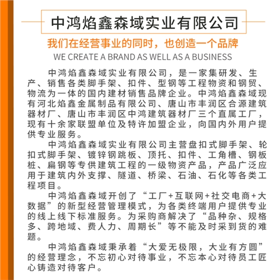 执行标准:JGJ 231-2010材质:Q195-Q235混材配件:轮盘、插头、立杆套筒组成部分:立杆、横杆表面处理:浸漆(红色、蓝色或按需定制)或镀锌产品用途:多用于建筑内架支撑,也可搭设外架,路桥施工等