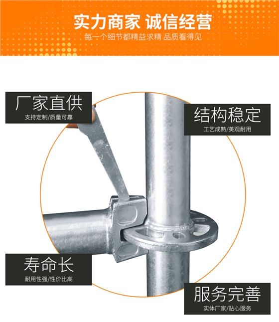 执行标准:JGJ 231-2010材质:Q345配件:菊花盘、插销、连接棒组成部分:立杆、横杆、斜拉杆表面处理:浸漆或镀锌产品用途:多用于建筑内外架搭设,路桥工程等